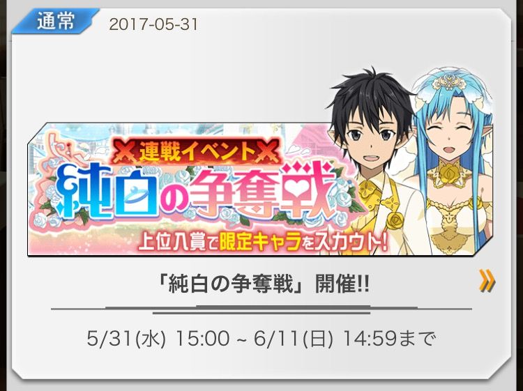 【【メモデフ】 連戦イベント 純白の争奪戦 開催‼ 2017年5月31日(水)15:00〜6月11日(日)14:59まで【ソードアート・オンライン メモリー・デフラグ】】の続きを読む