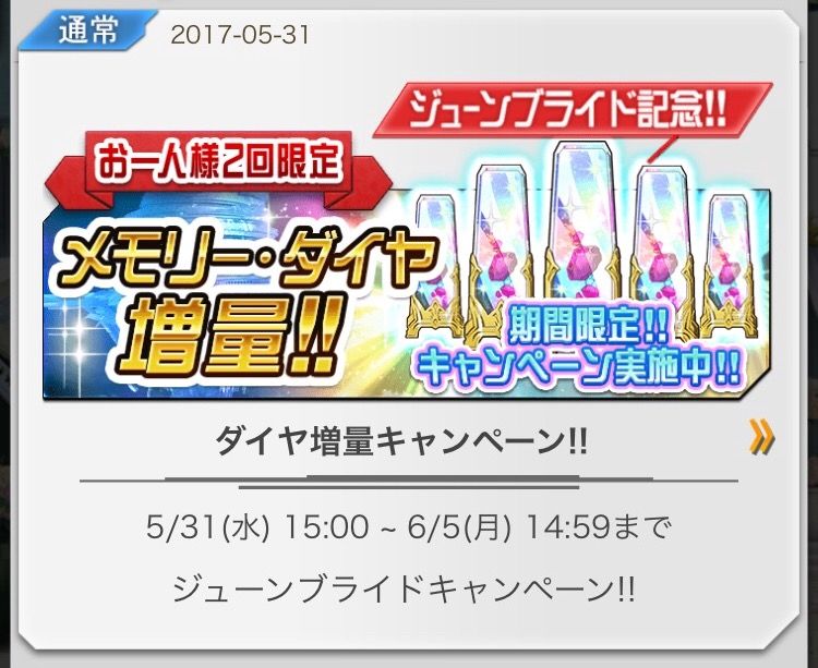 2017年5月31日(水)15:00〜6月11日(日)14:59まで