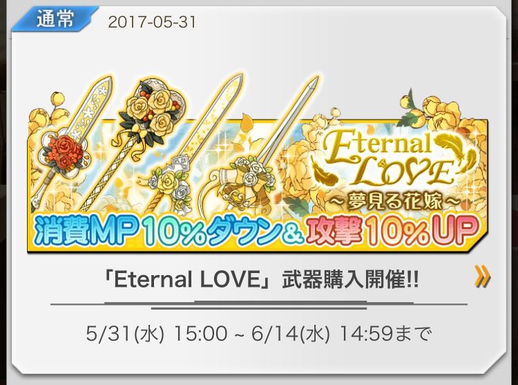 Eternal LOVE 〜夢見る花嫁〜 武器購入開催‼ 2017年5月31日(水)15:00〜6月14日(水)14:59まで